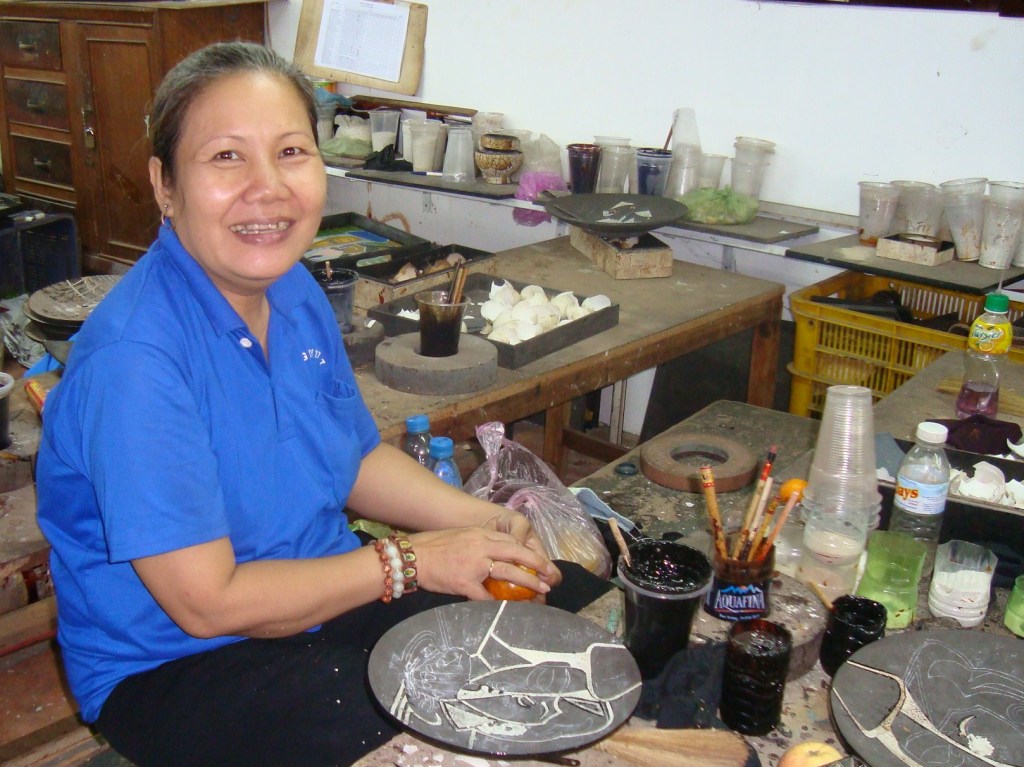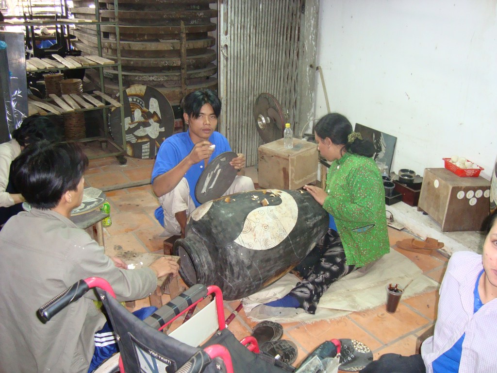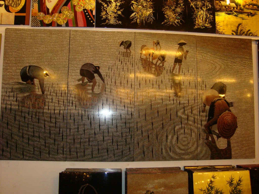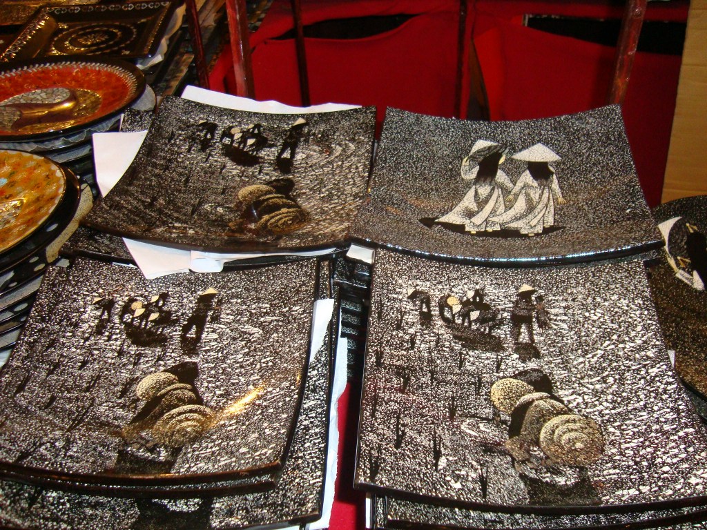 It was very low key. They were making beautiful ornaments, plaques, bowls, vases, etc using mother of pearl and so on. What really “floated our boat” was the ingenious way that they used broken egg shells to make some fabulous stuff. Take a look at the pics which, sadly, don’t do them justice.