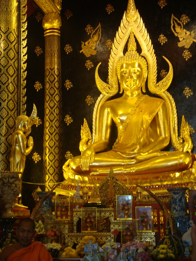 Wat Phra Si Ratana Mahathat (sometimes known as Wat Yai) houses a Buddha which is second only to The Emerald Buddha in Bangkok. Donations at the Wat are in excess of £250,000/year which is quite staggering when the average wage here in Thailand is less than £2k/year and there are Wats getting donations on almost every street corner. When we visited there were no other western tourists but bus loads of Thai’s come to pay homage. See the pics.