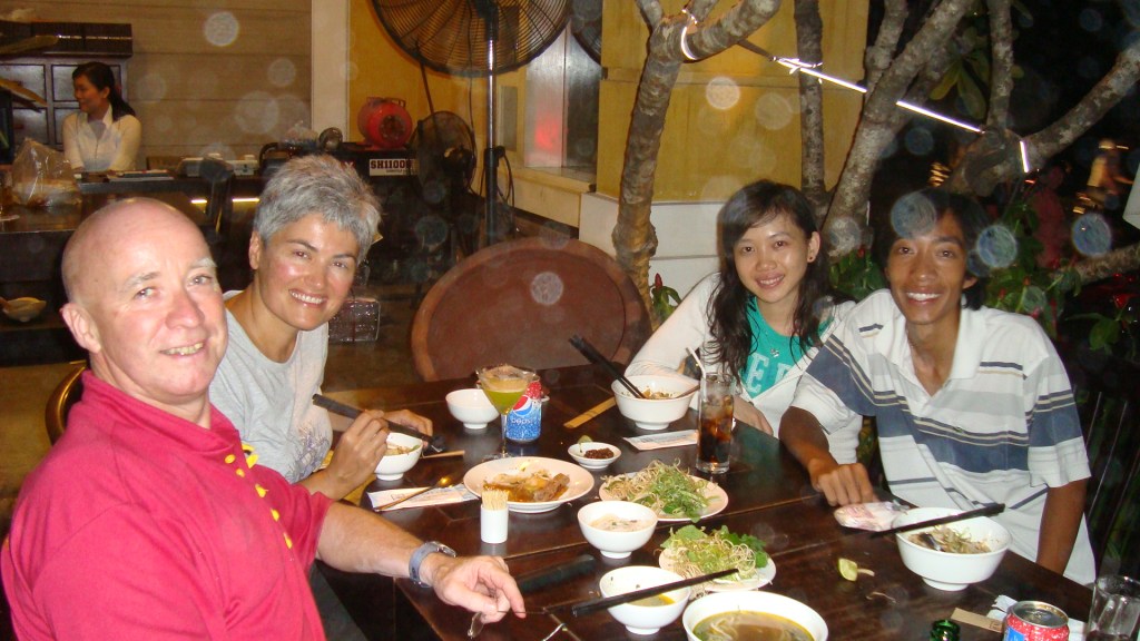 Our last night was spent with our Vietnamese friends Tien & Phuc. We met them in Dalat in February during the TET Festival. Tien is an English teacher in HCMC and she was home in Dalat visiting family. We kept in touch and they took us to a Vietnamese Restaurant where we had some very delicious traditional foods in what was a very popular restaurant indeed. They are a lovely couple who told us lots about Vietnamese life, her dislike for the big city and her longing to go home to the mountain cool of Dalat and her family. She answered lots of our questions and, equally, we hope we answered her questions too.
