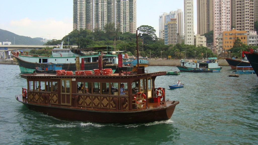 We then got a different ferry back to Aberdeen on HK Island, the opposite side to the business centre, and probably named after the massive fishing fleet that used to sail out of Aberdeen in Scotland. It is the typhoon shelter for all things afloat, especially the fishing fleet, and was just a heaving mass of boats….take a look at the pics. You will see sampans, big trawlers and small craft surrounded by 40 storey condo’s……an amazing sight.