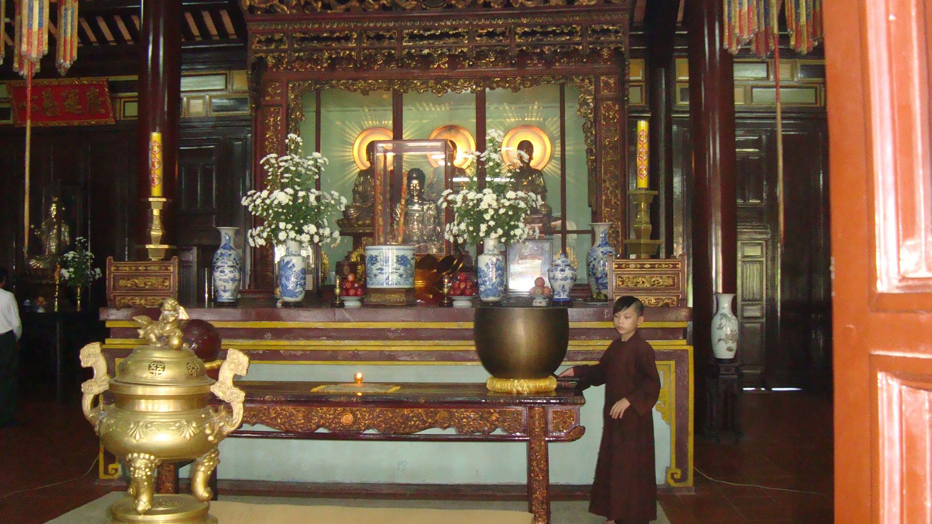 We’ve been to Hue before but decided to use it as a place to break up the journey south. We also wanted to do one of the trips again, The Tombs of The Kings, as we now know much more of the history hopefully making the tour more meaningful. It was, as expected, a great trip and as we opted not to include a tour of the Citadel, we were put into a group of just 5 and taken to visit to a 100 year old traditional Vietnamese house and garden occupied by a very unassuming lady. Inside the wooden house there was a wonderful display of pictures of her ancestors and outside a serene garden with a myriad of fruit trees and spice shrubs. The trip was broken up with an excellent buffet lunch which we hadn’t bargained for. Our ticket price was to include a simple lunch. Being cheapskates, we opted not to upgrade for 50,000VND. By the time we got to lunch the tour guide seemed to have forgotten what we had paid and were cordially invited to tuck into a grand buffet along with everyone else.