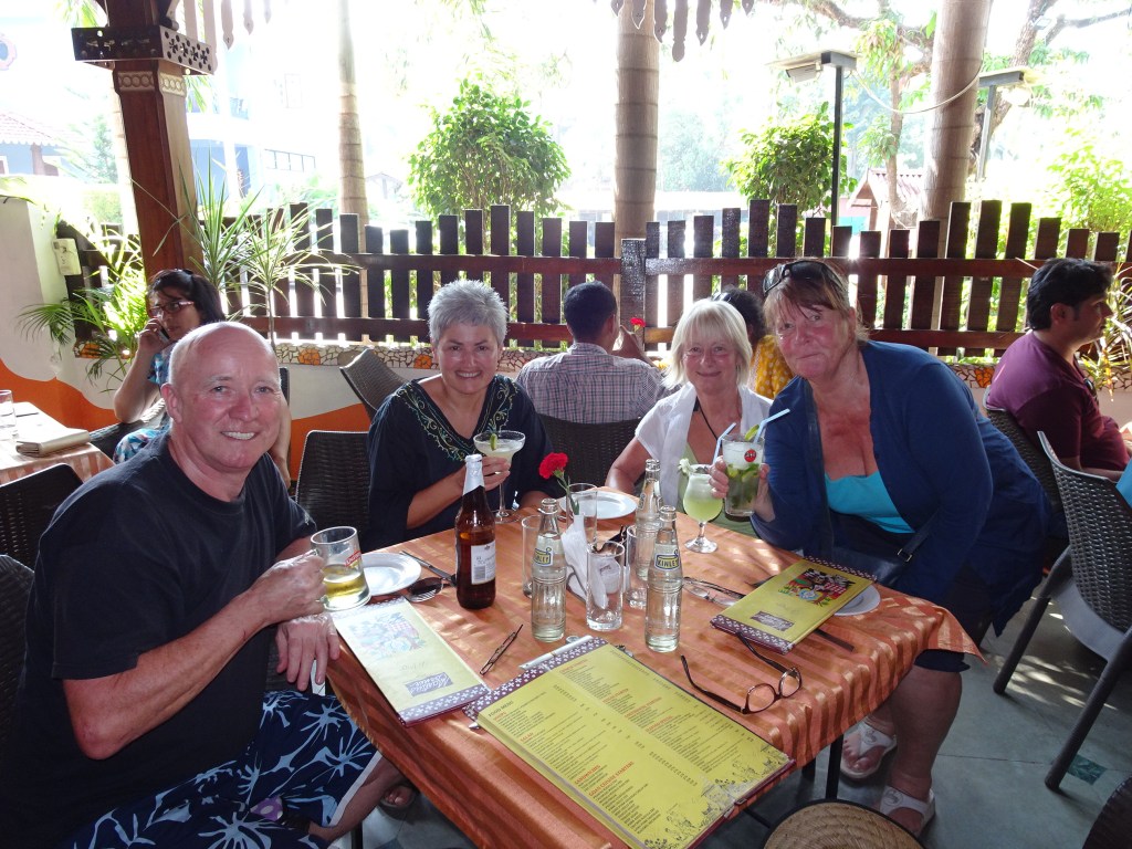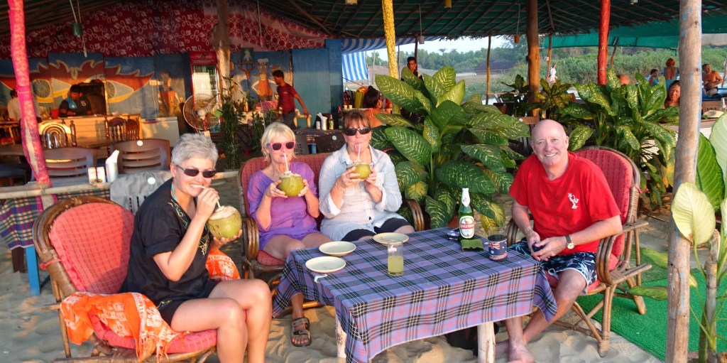 They arrived back at midday to find Cheryl banging and crashing about as she swept the stairs and June quietly asked Neil why was Cheryl cleaning today? This was just as he spotted it on the calendar whilst closing down the computer. That was an almighty ‘oh sh*t’ moment – yes readers, he had forgotten Cheryl’s birthday! His mitigating circumstances were concentrating on making sure we all had enough cash to get by plus ensuring that June and Barbs got back from Kerala OK. It had completely slipped his mind – ‘oh sh*t, oh f**k, oh b**llocks, Neil you’ve really gone and done it this time you pillock’! So, blunt rusty knife in one hand, balls ready on a plate in the other hand ready to be surgically removed he went upstairs to beg for mercy. Fortunately for him whilst this was a gargantuan error of judgement Cheryl decided it didn’t warrant the removal of his precious gonads……….but it came pretty close. Keen to make amends, Neil quickly ordered a taxi and we went off to Martin’s Corner for cocktails, a long lunch and a relaxing walk back down the beach just in time for sundowners. Cheryl mellowed a little after her fourth Margarita.
