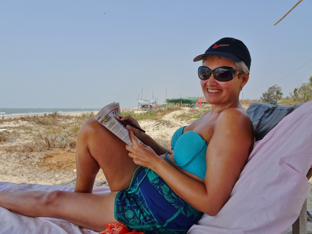 Now, here’s a question. Is our favourite beach shack becoming like Benidorm? There are many characters who frequent the shack during our three month stay, some more colourful than others. Most are quiet couples who like to chat a little but mainly enjoy reading and the tranquillity of our usually uncrowded and haphazard shack. This year we have our first transgender, a lovely person from Dublin called ‘Sean or Heather’. Heather has a lovely selection of bikinis and dresses and, as you might expect for a Barrister, a great sense of humour. Sometimes the overall effect of the delicate outfits is spoiled a little when Heather sits puffing on a very large cigar! We have a bag lady – well she turns up with plastic bags on her feet then heads down to the sands to top up her mahogany tan. Let’s not forget ‘Frenchy’ a very elegant high maintenance lady with a delightful sing song French accent and her gentleman friend ‘Swede’ who are a couple in their 70’s who use English as their common language. He starts at 10am with a beer before they both hit the vodkas and they openly bicker like there’s no tomorrow.