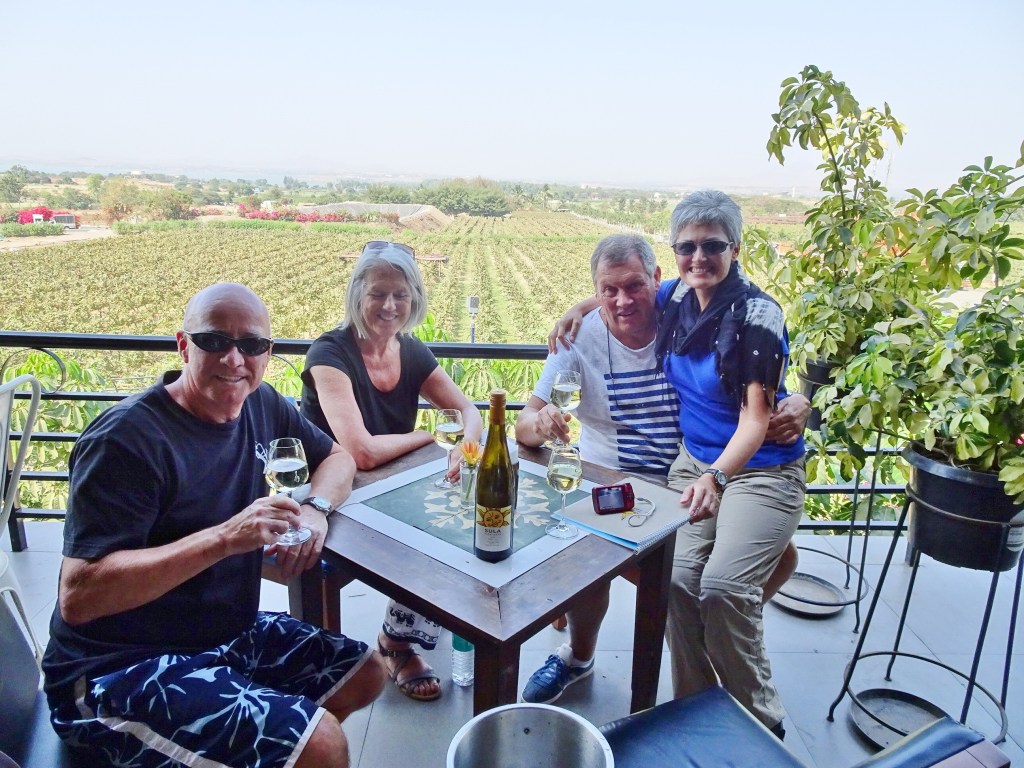 Next day it was slightly less of the same as we were all feeling a bit jaded, especially Cheryl who had had a very bad night (both ends…….too much information?). This time we chose Vallonne Vineyard, which had the most enthusiastic and knowledgeable young Indian winemaker. It is also situated above a huge and beautiful lake in the middle of nowhere. Finally, on to Grover Vineyard which was nearby.