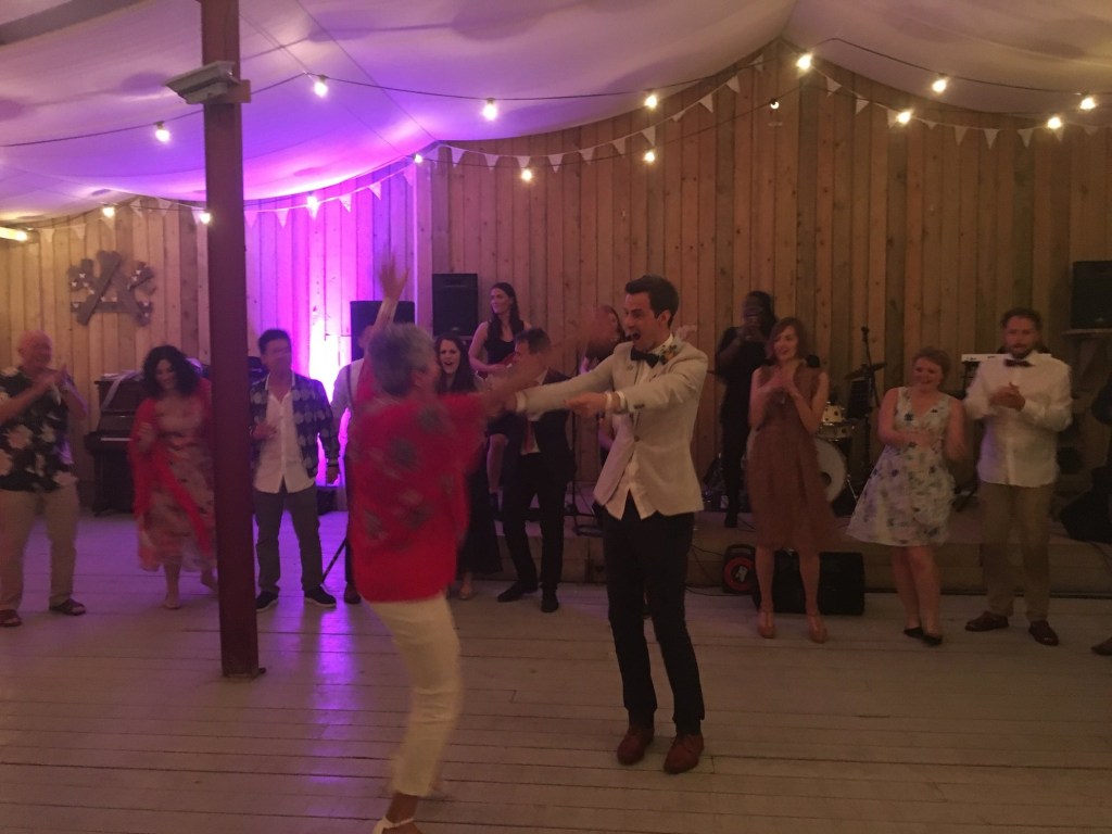 The evening finished off with an all-girl band, more drinking, dancing, crowd surfing for Alex and Freddy, silly games, bouncing on the bouncy castle (only one minor injury), campfires with chubby bunnies competitions, chatting and hot tubs. A fantastic day despite the great British Summertime weather and even Neil, who doesn’t ‘do’ weddings, had a great time.