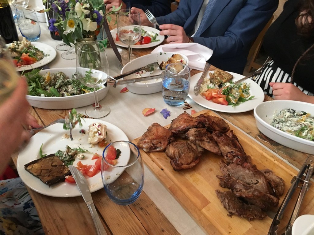 The lamb continued to cook and a beer tasting was set up with beers from Gun Hill, the micro-brewery that’s run by the farm. There was also a local English white wine which was very good and guests were given name badges to help break the ice. A relaxed evening and a great start to the weekend.