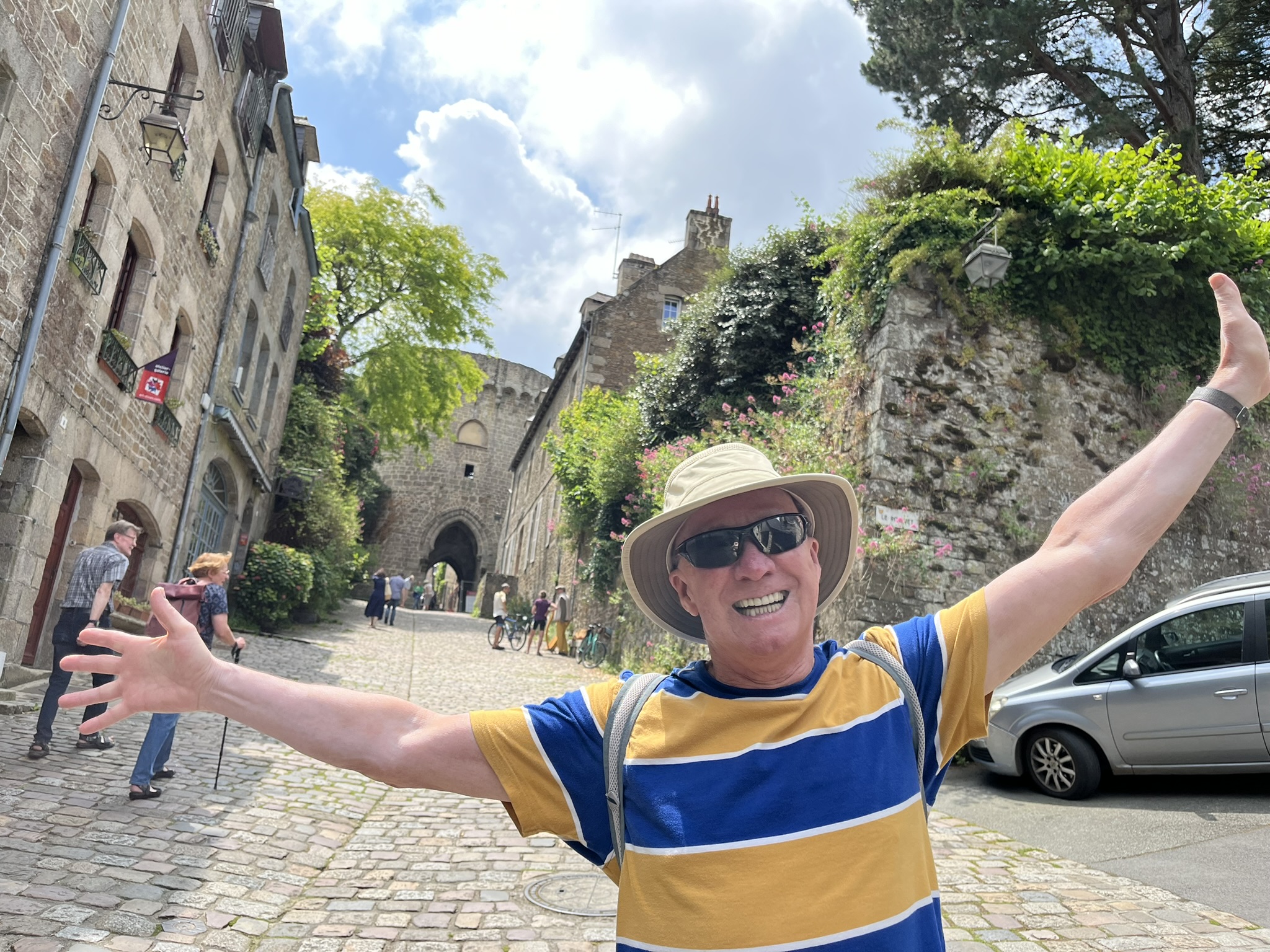 Shortly after we headed off to Normandy, where it all happened on June 6th  1944, for our biannual twinning visit.  This time it proved impossible to find a coach company at a sensible cost so all participants travelled separately.  That gave us the opportunity to extend our trip to see a little bit of Brittany as well as Normandy.  The overnight ferry from Portsmouth to St Malo was a nice relaxed journey allowing us to have dinner before enjoying the cabaret, a good old fashioned clown, who had us both on stage to assist.  He was very funny and we got to bed much later than planned having consumed way too much wine.