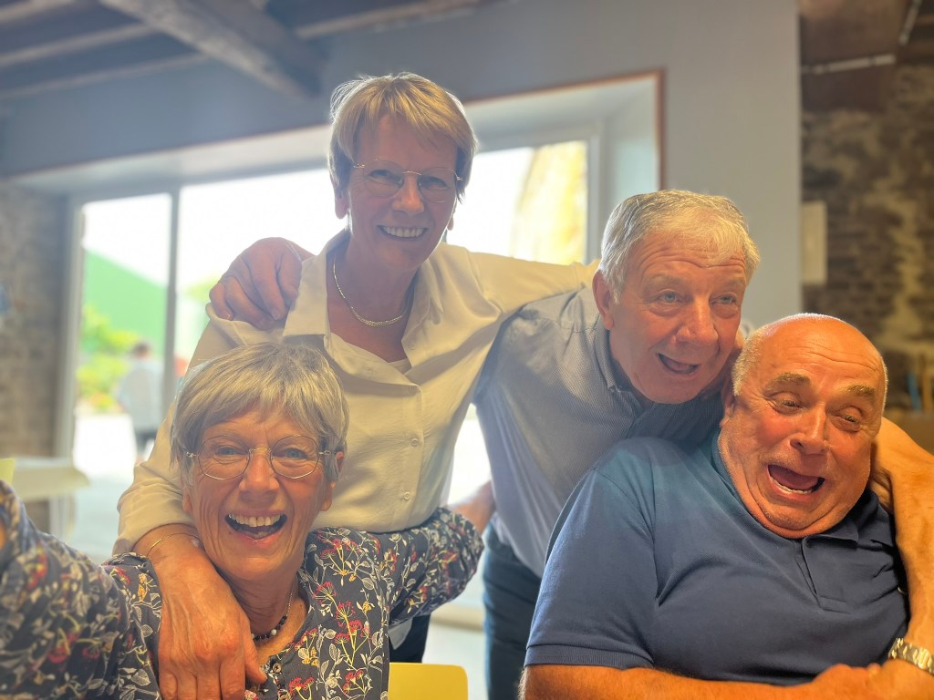 After lots of kissing, hugging and hand shaking we set off for Baron-sur-Odon, a small village about 20 minutes away.   We went to visit Jean-Marc and Collette who Neil hadn’t seen for about 30 years.  When Neil was introduced to his first twinning experience whilst living in North Devon they were his very first hosts.  We had coffee with them and looked at photos that Neil had brought with him and that they had taken too.  We talked about what the children are doing now, grandkids and so on.  Neil’s children would have been about 4 or 5 and they have 3 who would have been 4-6 years older.