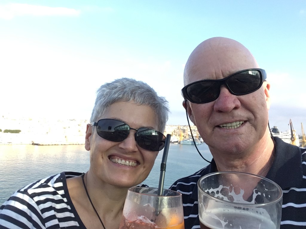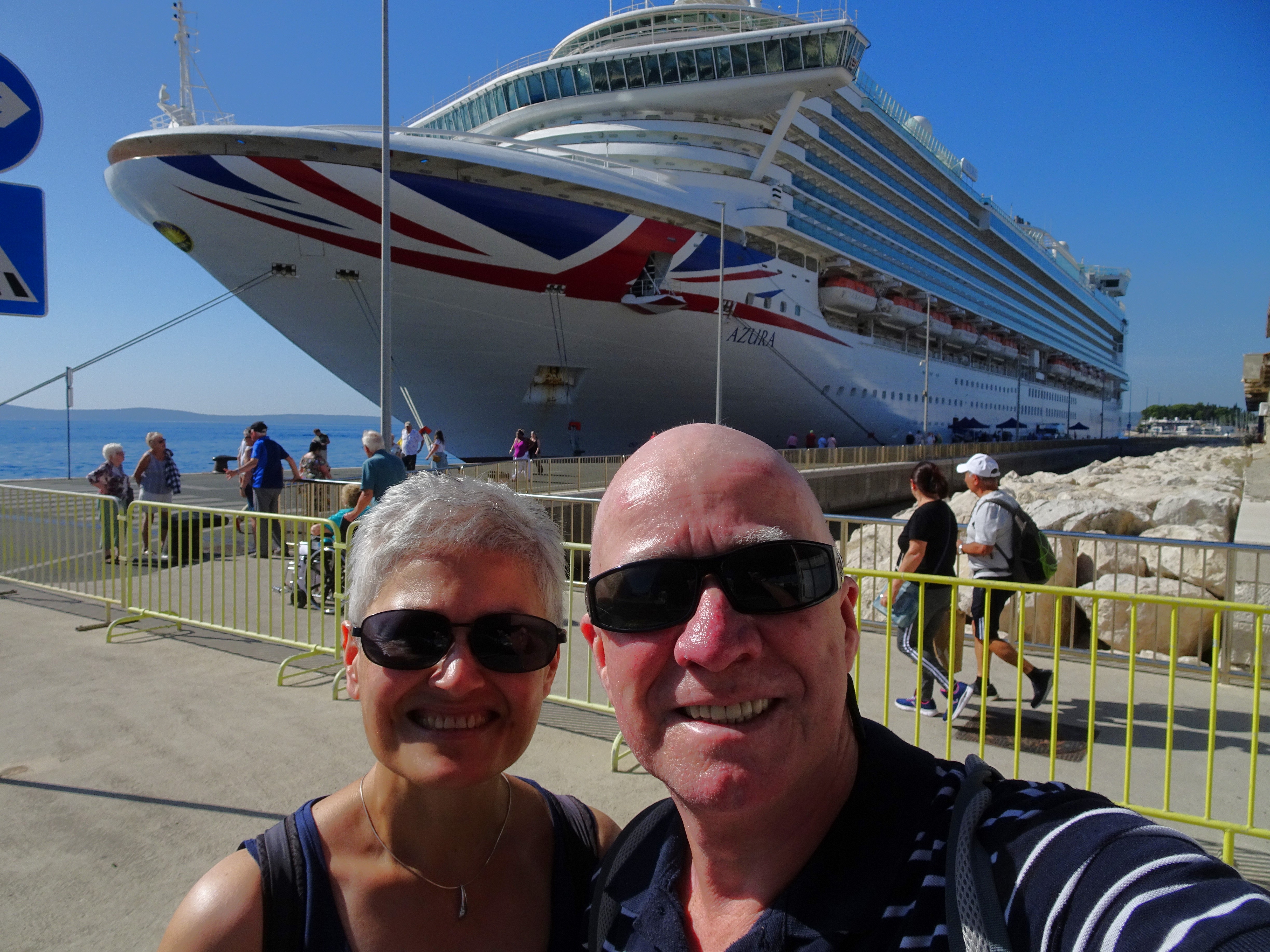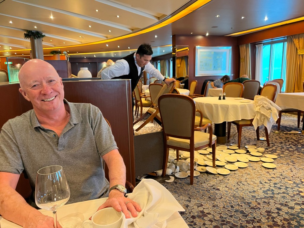 There was an interesting incident. After dinner there was usually some low key entertainment laid on in the bar. One night it was a music quiz with extra points on offer for those teams who got up and danced appropriately. It was the usual stuff, Macarena, YMCA etc. Regular readers will know that we can get quite competitive and that night was no exception. It was all going well until they played ‘Let’s Twist Again’ We leapt up while fellow team members wrote down the tune plus artist and started twisting. Unfortunately as Cheryl was challenging Neil to twist lower and lower he over balanced backwards and his razor sharp glutes crashed into the glass sides of the bar – and let’s just say the bar came off worst – oops!