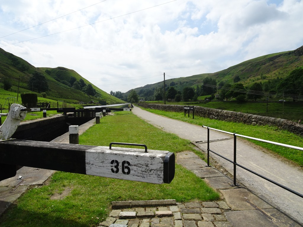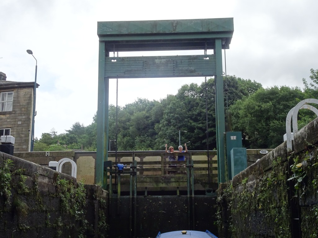 Colin did then use Cheryl to help let in more water from the lock further up, while he went even higher to get more water into the system. We finally got moving 2hrs later and after 22 locks and several miles we moored in Slaithwaite.