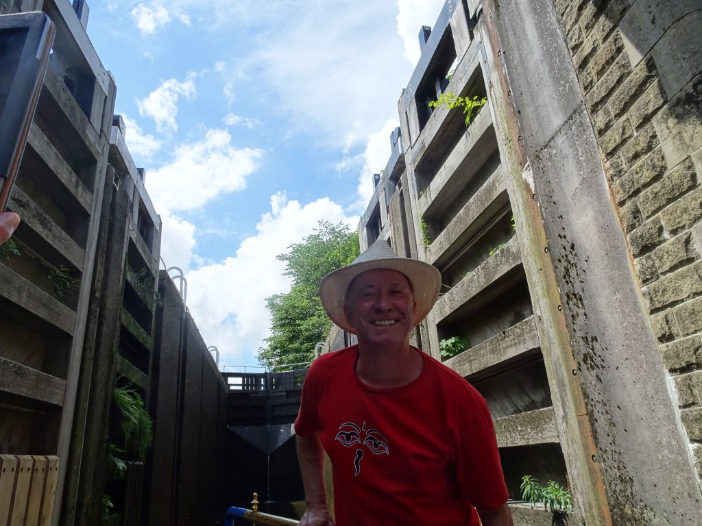 On July 1st we met with Gail, picked up our boat ‘Sun Conure’, and set off at 2ish for our 3 week trip around The Pennine and Cheshire Rings. We had a couple of easy days to start with which included catching up with our friend Ian who we met whilst couch surfing in Sri Lanka. Lunch at The Swan with 2 Nicks, what a great name, followed by a visit to National Trust Dunham Massey Hall.