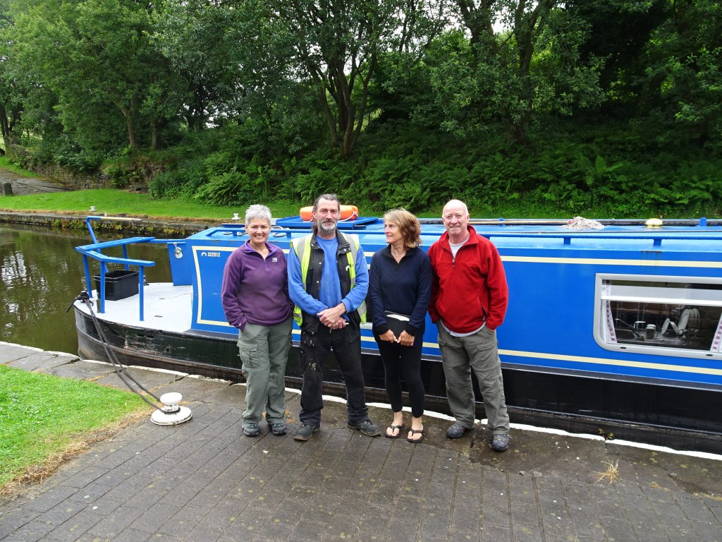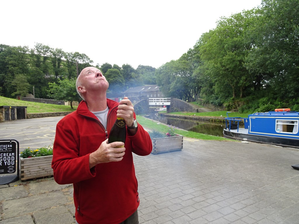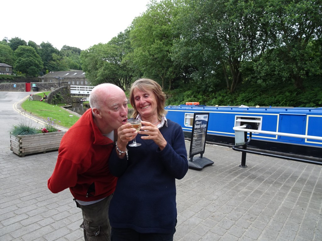We got delayed early next morning by a pontoon blocking our path while repairing a bridge damaged by the horrific floods that affected the area. The workmen were more interested on their tea break than shifting it so we were delayed almost an hour. That evening we moored in Aspley Basin in Huddersfield and took the opportunity to top up with gas, diesel and get a pump out for the toilets. We’ve never done a pump out before so it was the blind leading the blind – one mistake and we could all be wearing a new suit of shit! That evening we had a great time with Donna and Rob, friends from Wakefield, in the pub adjacent to the basin.