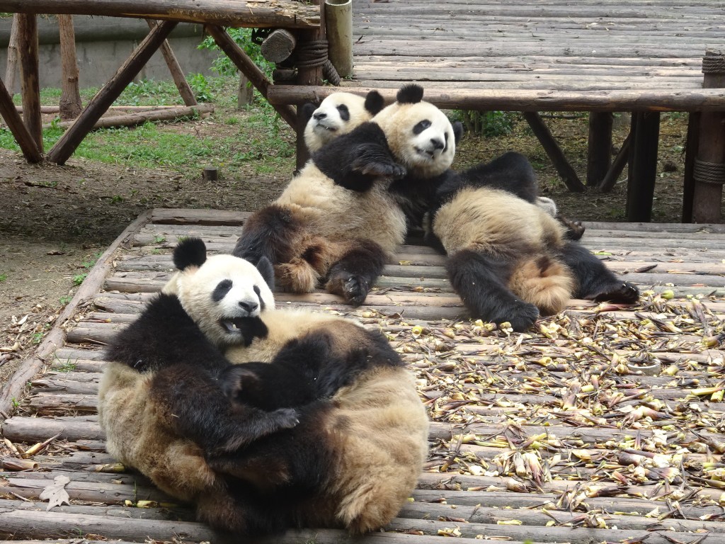 Pandas are seriously endangered and we were given a number of reasons why this is. Obviously, we humans have had a lot to do with it. However, the female is only on heat for 3 days a year. To make things worse, the males still think their piece of equipment is just for peeing through – unlike most wildlife that can’t get enough. It appears that pandas prefer chewing on a piece of tasteless bamboo over a bit of rumpy pumpy! Also, a female will normally produce twins and abandon the weakest – this is nature. However, the centre staff have come up with a wizard idea that is now saving almost 100% of those that would have died. Pandas don’t seem to be too bright so the staff rescue the abandoned baby at birth and keep it in an incubator. Then, as many as 10 times a day, switch the babies over with the mother. Mummy panda doesn’t notice and she unwittingly rears 2 babies – we said it was a wizard idea!