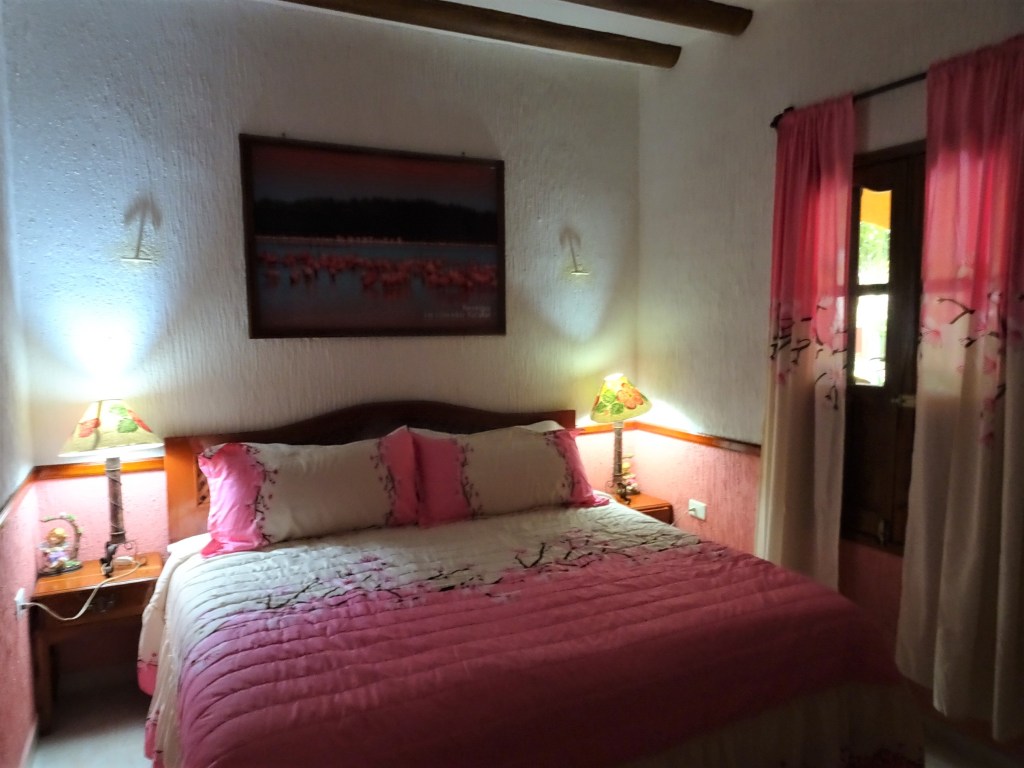Anyway, back to the trip to the canals at Xochimilco. Mexico City was built on a lake which explains why a lot of the older buildings are twisted and lean in different directions like the Tower of Pisa. In pre-Hispanic days the inhabitants created raised fertile land, or floating gardens, to grow food and this resulted in a canal network, a small part of which still exists on the Southern edge of the city. Today it’s main focus, apart from a few garden centres is to provide leisure with colourful boats carrying families and groups who want to party. There are small boats who sell drinks & snacks as well as music from Mariachi bands and other musicians. At the weekend it has a fiesta atmosphere so we decided to go on Saturday. The boats can seat up to twelve so we hovered at the dock waiting for other small groups of foreigners or couples to join with but after 20 minutes we realised it wasn’t going to happen so we chartered our own boat and set of for one and a half hours. It was fun, and we got a good contrast of peaceful smaller channels alongside absolute grid locked full on party chaos!