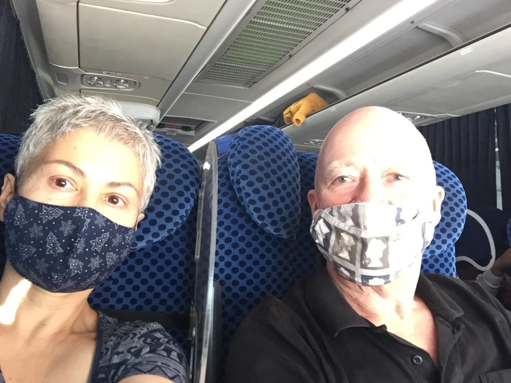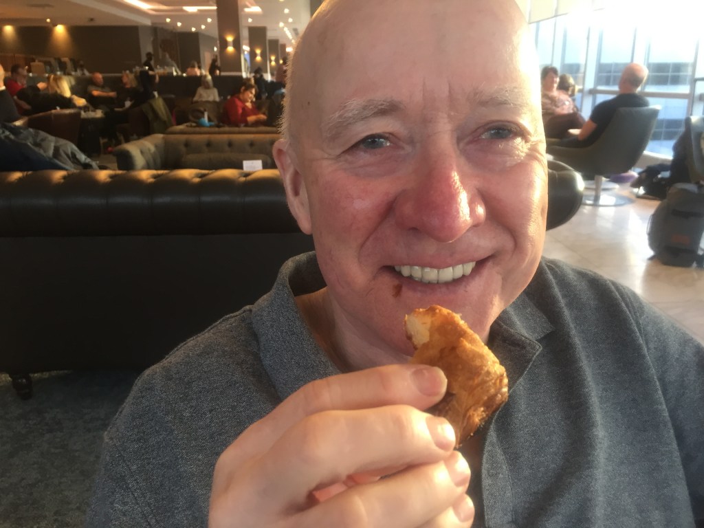 The plane took off bang on time and once we were given the all clear to flatten our beds Neil was gone, away with the birds fast asleep. Cheryl wasn’t sleepy and waited for the meal which wasn’t great. Never mind, she thought I’ll just have a big glass of red wine and hopefully I’ll be ready to sleep by the time the really bad film finishes. She hadn’t realised just how much her table sloped until the glass landed in her lap, all over the napkin, the blanket, her trousers and the edge of the seat – oops! Luckily most was absorbed by the napkin and blanket. Neil slept for almost the entire journey, waking up in time for breakfast, blissfully unaware of Cheryl’s drama.