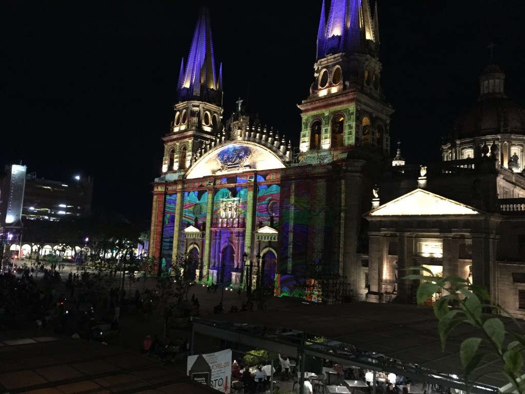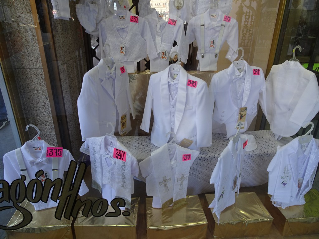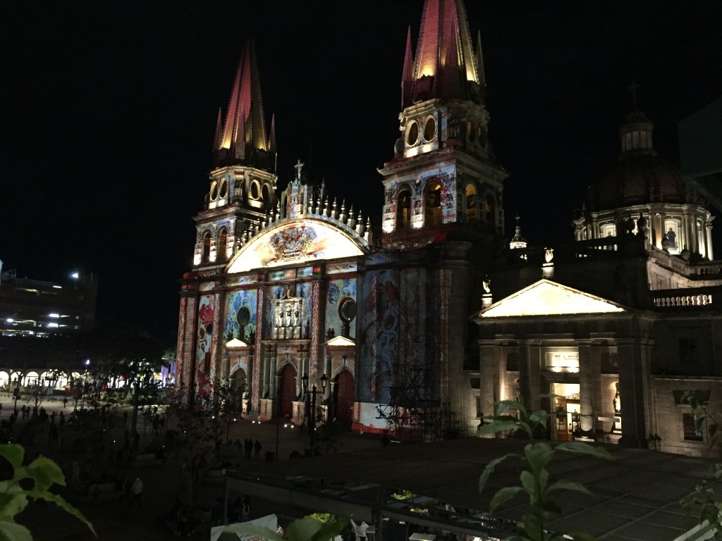 We got back to Mexico City late afternoon and headed to the Zocalo to watch the flag lowering ceremony. The Zocalo is an immense open square and was recently used as a location in the James Bond Spectre film. There is a central flagpole and an absolutely huge Mexican flag which flies during the day. We watched as a team of military personnel expertly lowered the flag, carefully catching the edge so as not to let it touch the ground and then start spinning and wrapping the fabric so it could be carried away. It was so big it took 15 people spaced about a metre apart stretched along its length to handle it. The crowds didn’t need safety barriers to keep the required distance away – they just politely stayed put as directed by the soldier clearing sufficient space for the ceremony. What a contrast to India where we know that no one would resist pushing forward to get a better look!