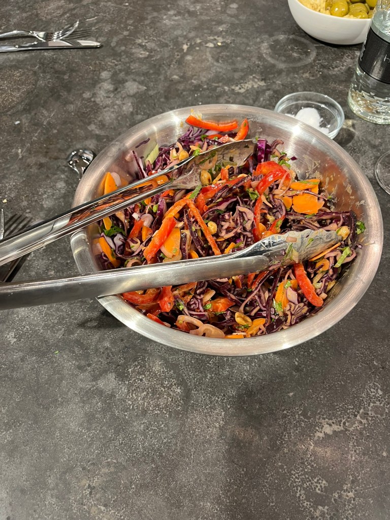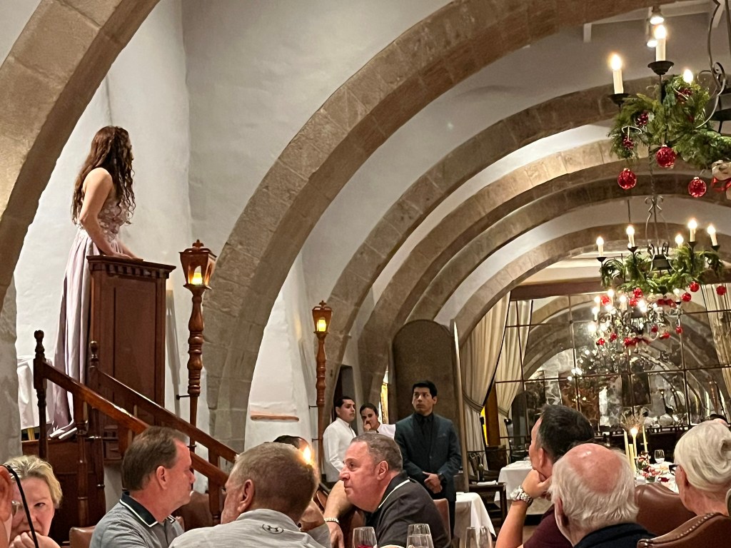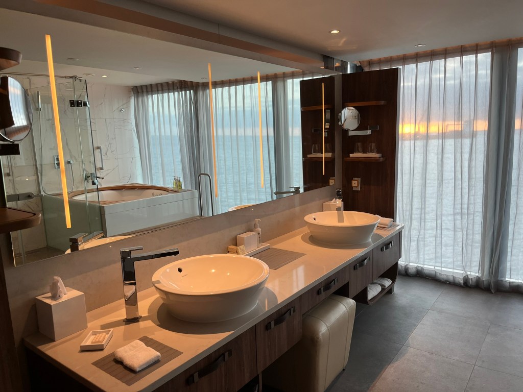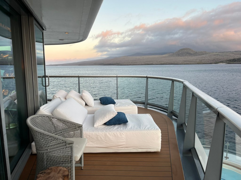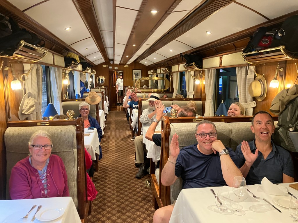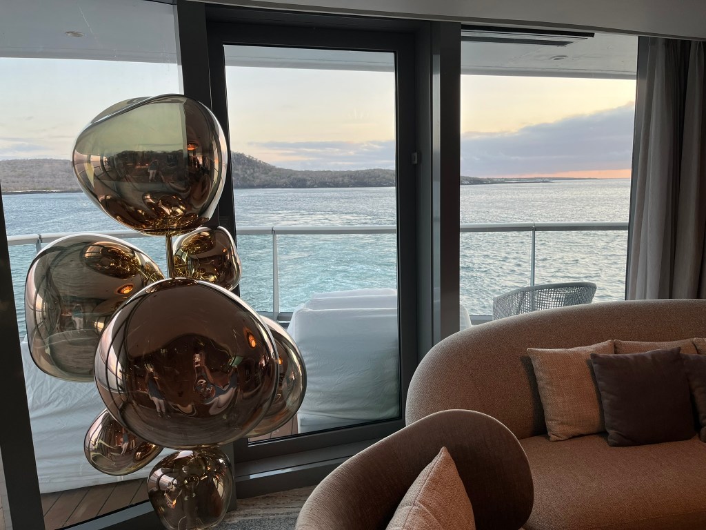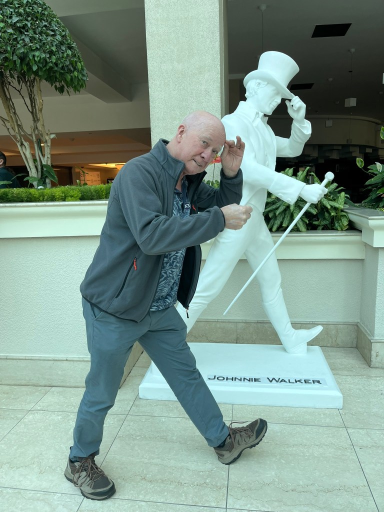 There was an interesting incident. After dinner there was usually some low key entertainment laid on in the bar. One night it was a music quiz with extra points on offer for those teams who got up and danced appropriately. It was the usual stuff, Macarena, YMCA etc. Regular readers will know that we can get quite competitive and that night was no exception. It was all going well until they played ‘Let’s Twist Again’ We leapt up while fellow team members wrote down the tune plus artist and started twisting. Unfortunately as Cheryl was challenging Neil to twist lower and lower he over balanced backwards and his razor sharp glutes crashed into the glass sides of the bar – and let’s just say the bar came off worst – oops!
